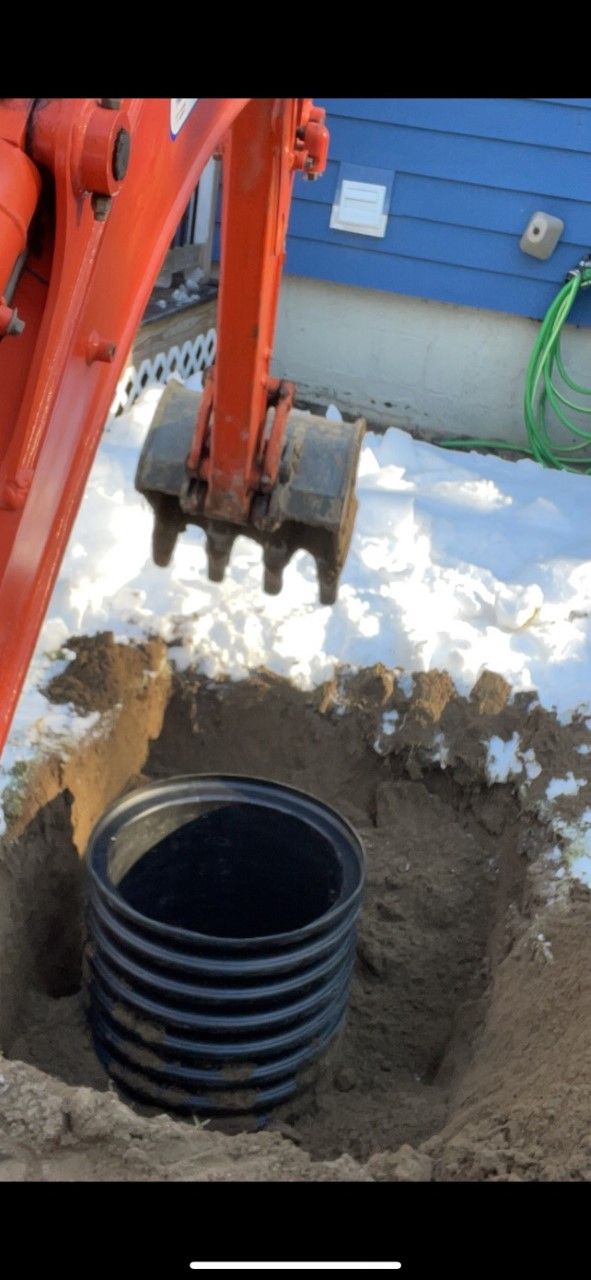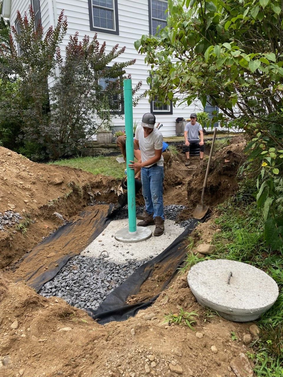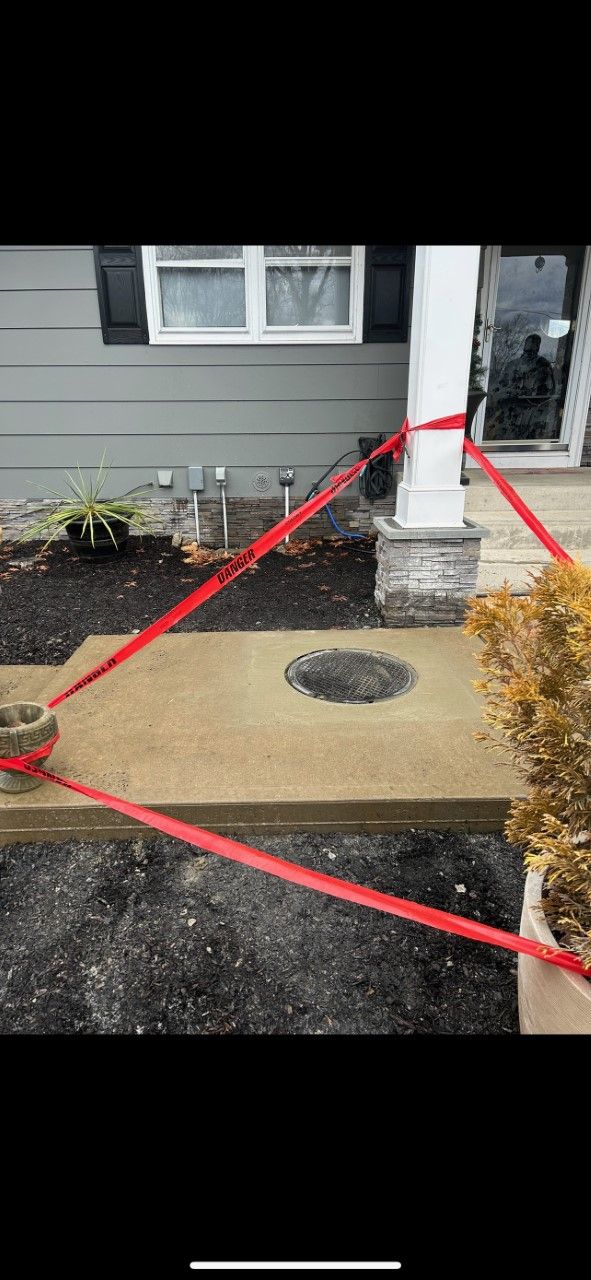 Manhole Installed In Concrete Sidewalk, Saw Cottage Sidewalk, Jackhammering Out, Concrete, Cleaning, Septic Tank, Installing Manhole Reconcreting Sidewalk