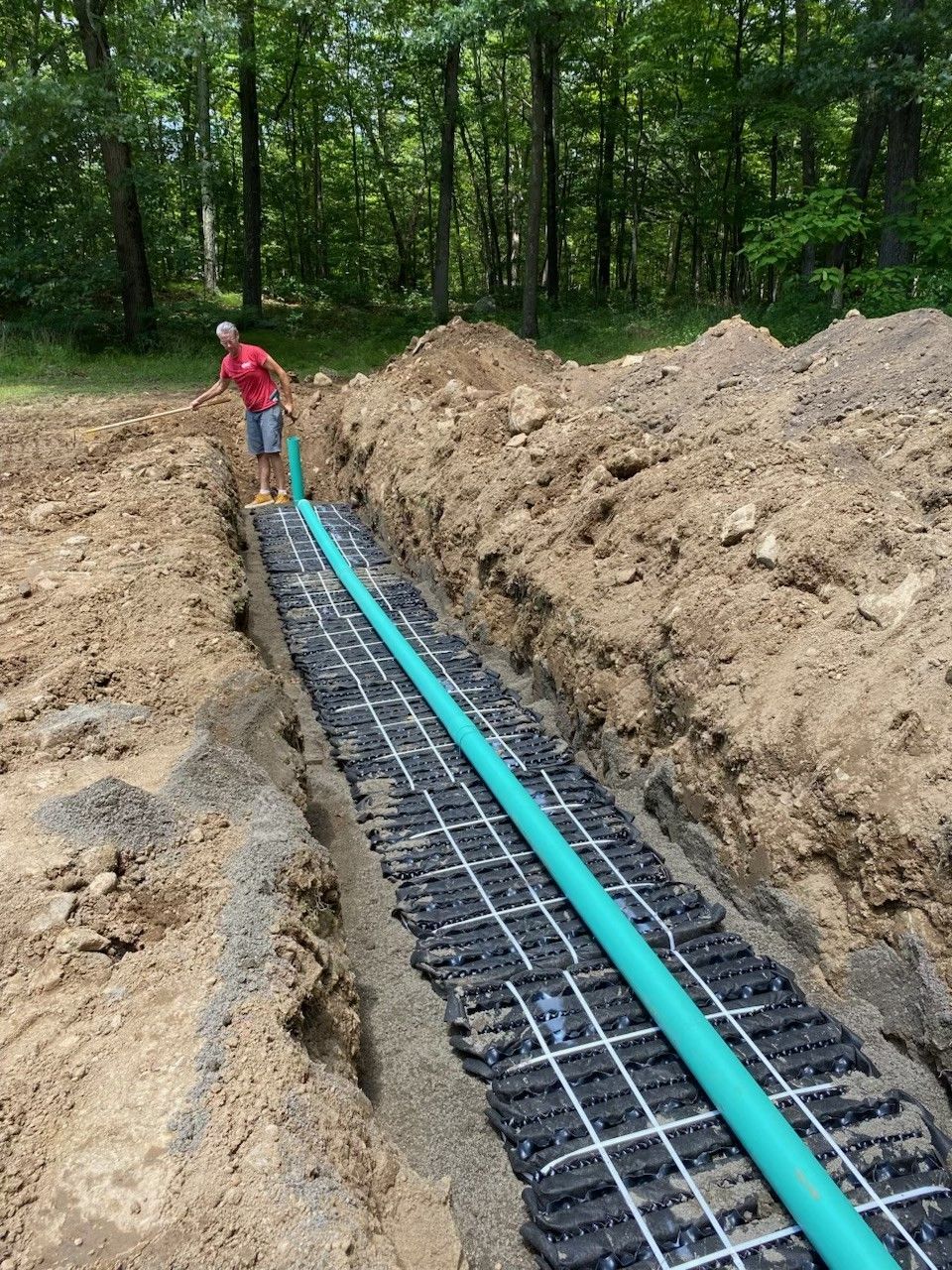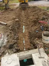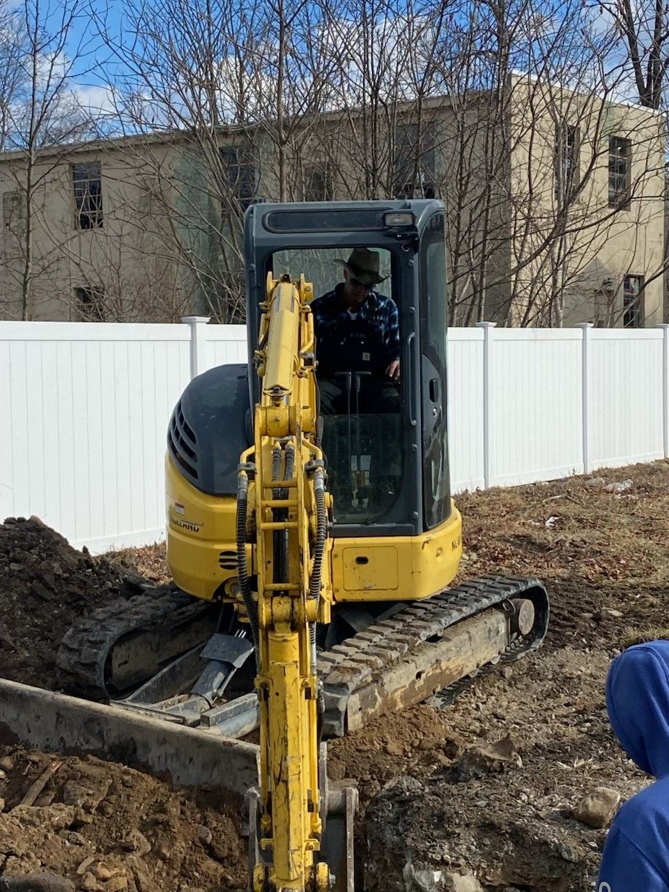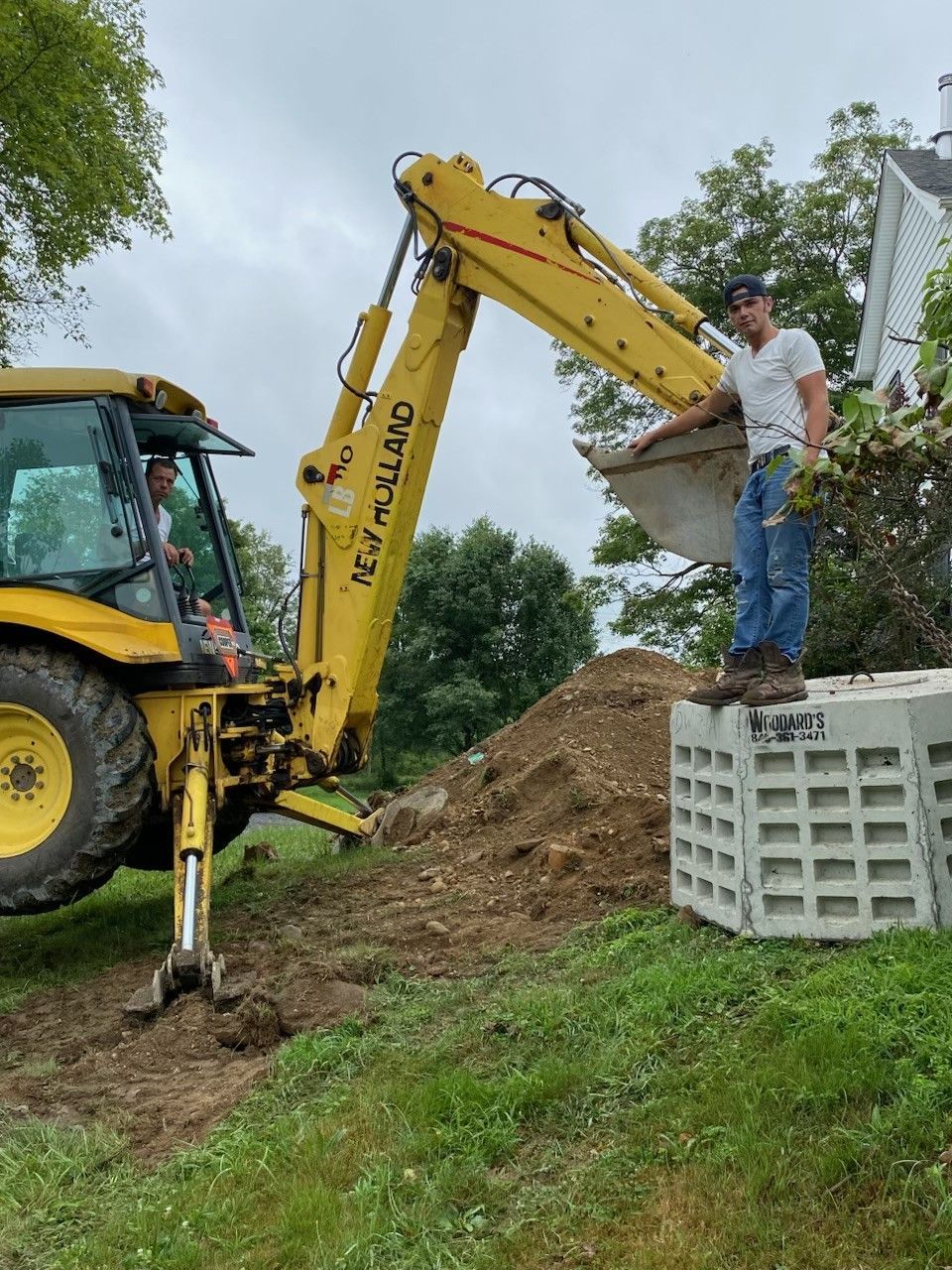 Manhole Installed In Concrete Sidewalk, Saw Cottage Sidewalk, Jackhammering Out, Concrete, Cleaning, Septic Tank, Installing Manhole Reconcreting Sidewalk